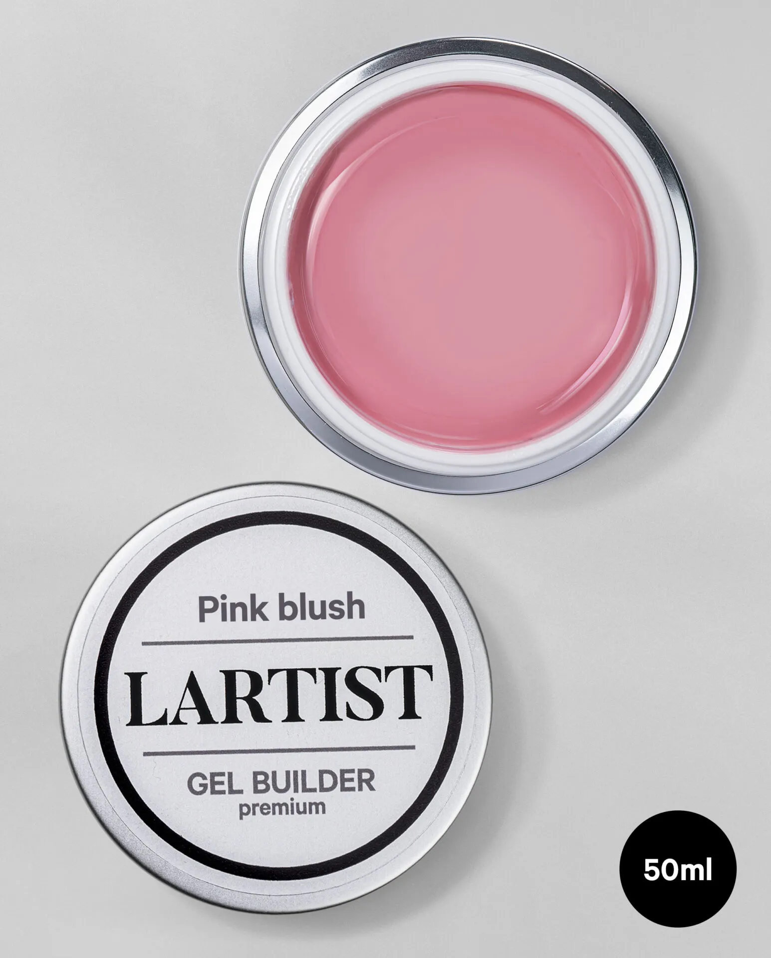 Gel Premium Builder Pink Blush L’artist es un gel de color rosado, muy pigmentado, no quema, con alta densidad, máxima adhesión y es extremadamente resistente, siendo la elección perfecta para la técnica sin limado.