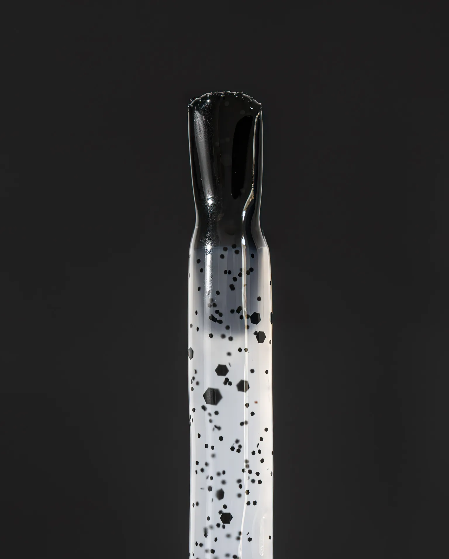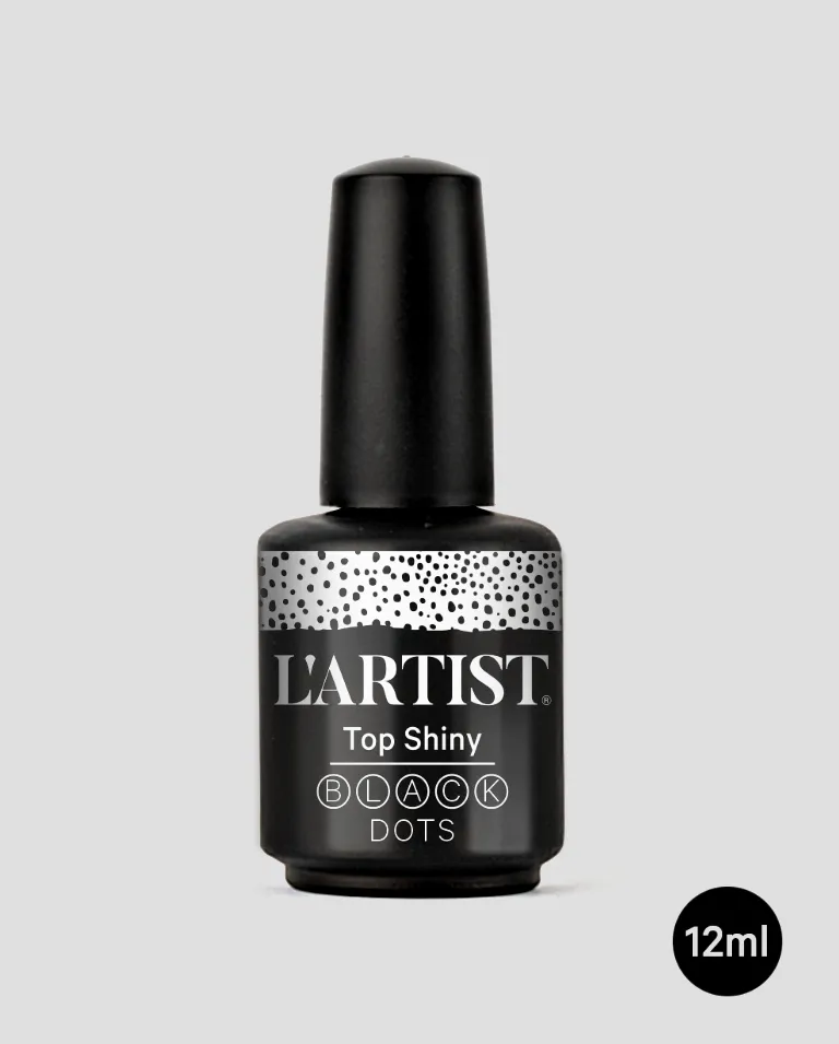 Decora tus trabajos de manicura de forma rápida y elegante con este top coat con partículas negras.