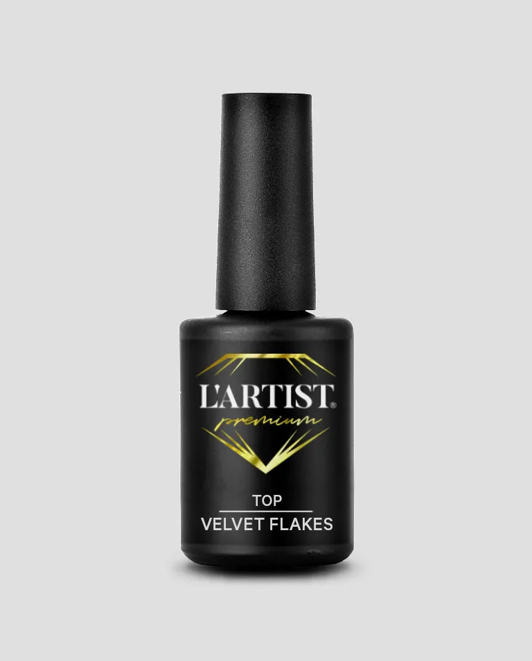 El TOP COAT Velvet Flakes se aplica uniformemente y preserva el aspecto y la textura durante semanas, se seca en lámpara UV o LED.